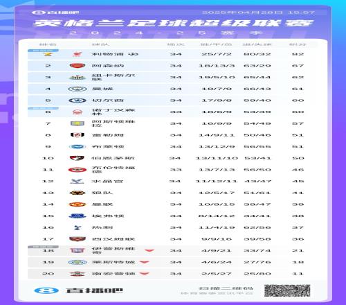 降级:南安普顿、伊普斯维奇、莱斯特城