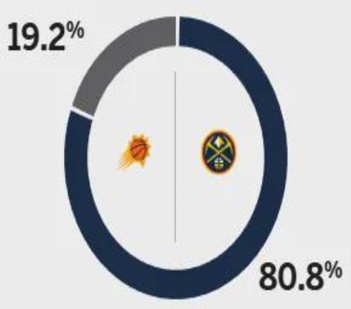 赛前,ESPN专家团对本场比赛做出预测:主场作战的掘金胜率超过八成,而客场作战的太阳胜率仅19.2%。