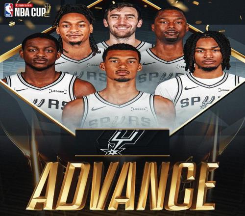 NBA杯继续进行,圣安东尼奥马刺队(18胜7负)赢球闯入NBA杯决赛。文班亚马复出得到22分和9篮板,福克斯得到22分,马刺队四人得分20+,他们逆转最多16分落后,在第四节关键时刻重新领跑并守住优势,马刺队以111-109险胜俄克拉荷马城雷霆队(24胜2负)。马刺队拿到3连胜,他们将与尼克斯队争夺杯赛冠军,雷霆队的16连胜被终结。